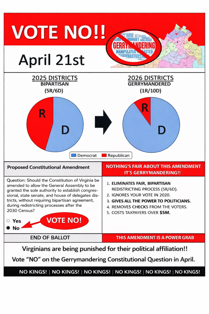 “VOTE NO” to Redistricting Virginia.
